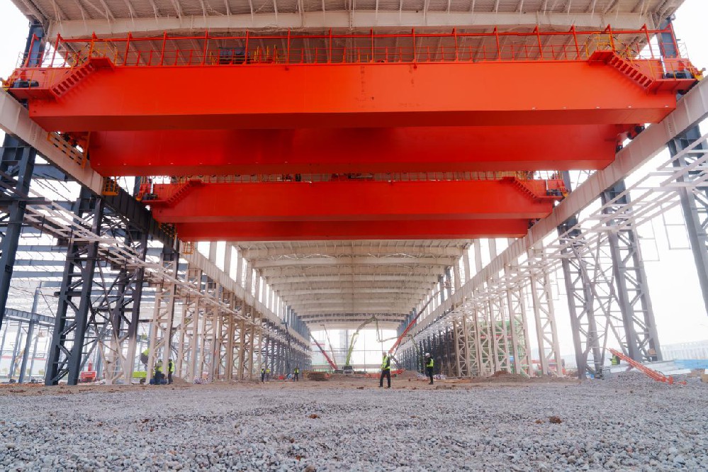 “原计划3月底完成的压铸跨主体结构施工,我们提前完成。”厂房建设项目负责人何胜元介绍。目前,压铸厂房主体钢结构、檩条铺设、天车安装及地面碎石层已全部完工,能源动力辅房砌筑完成60%,办公辅房浇筑完成60%。