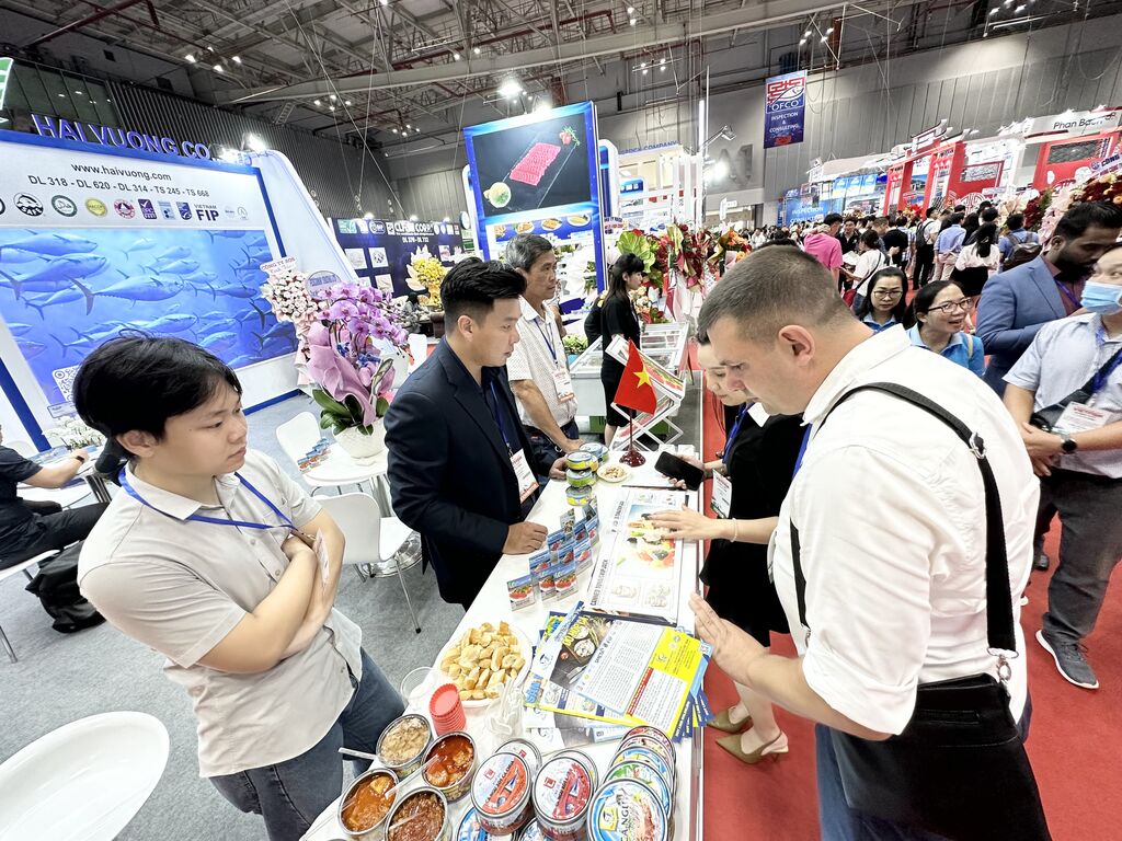 2024年展会面积达到14000平米,吸引了来自越南以及美国、印度尼西亚、印度、俄罗斯、日本、中国等15个国家的280多家参展商,共设近500个展位。Vasep主席阮氏秋色表示,越南目前被列为渔业竞争力较高的国家集团,水产品出口量位居世界第三,占世界市场份额的7%以上,仅次于中国和挪威。